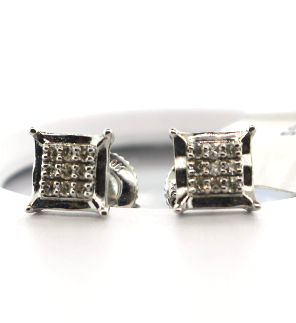 10K White Gold 0.14CT Square Earrings