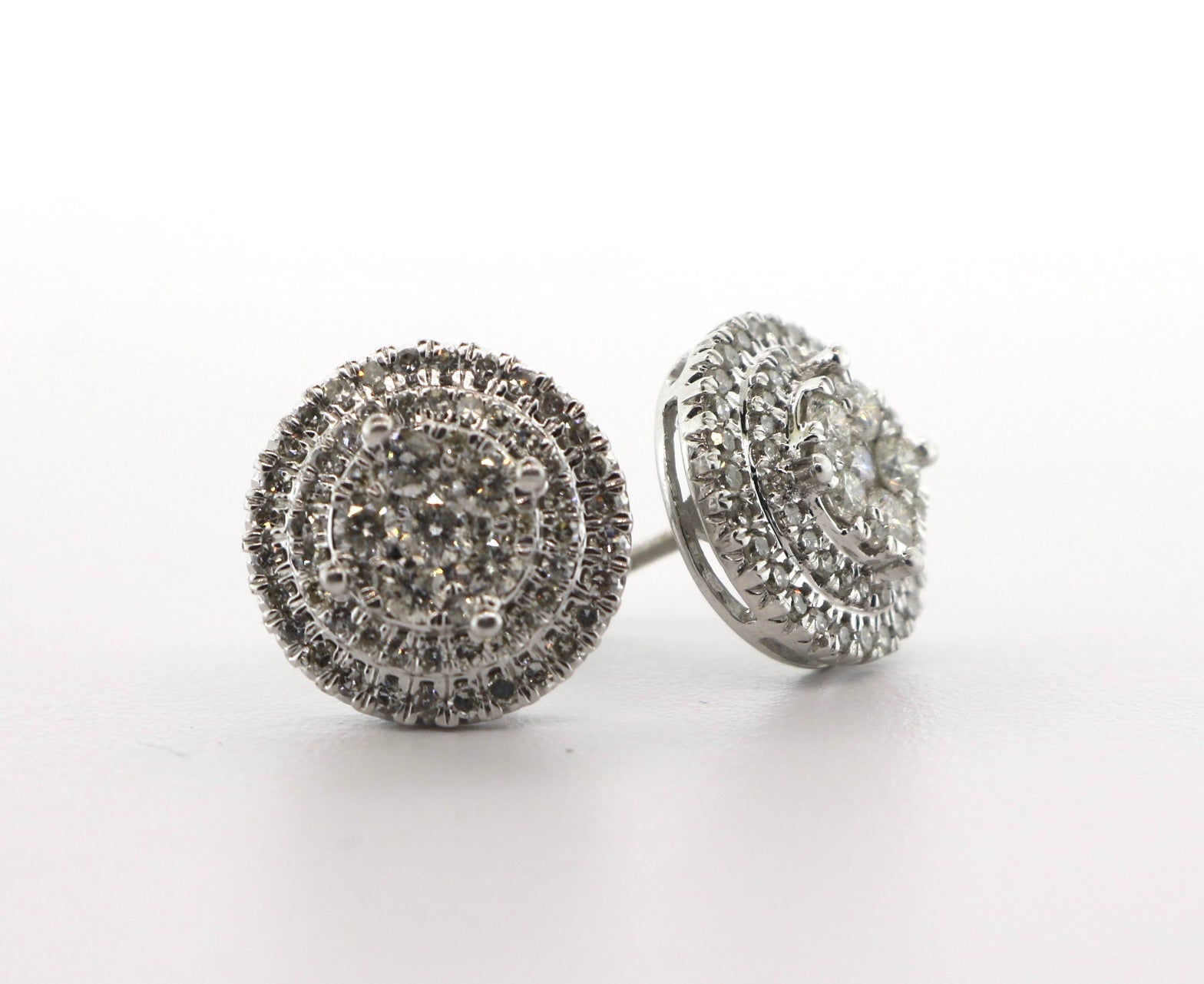 10K White Gold 1CTW 3.2 Grams Diamond Cluster Earrings