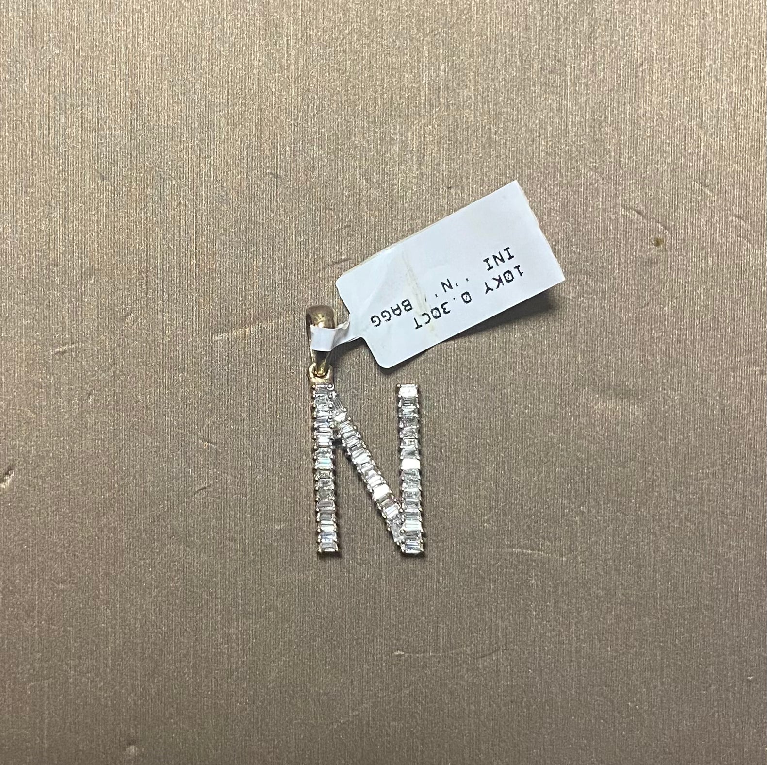10K Yellow Gold 0.30CT "N" Baguette Initial Charm