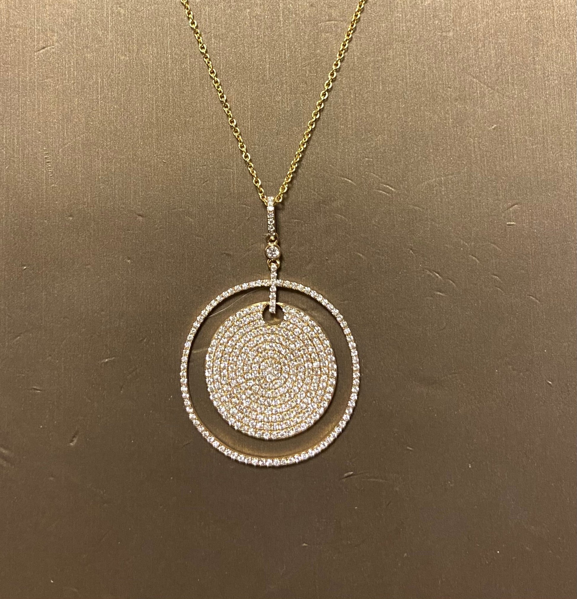 14K Yellow Gold 2.32CT 9GRM Halo Circle Necklace